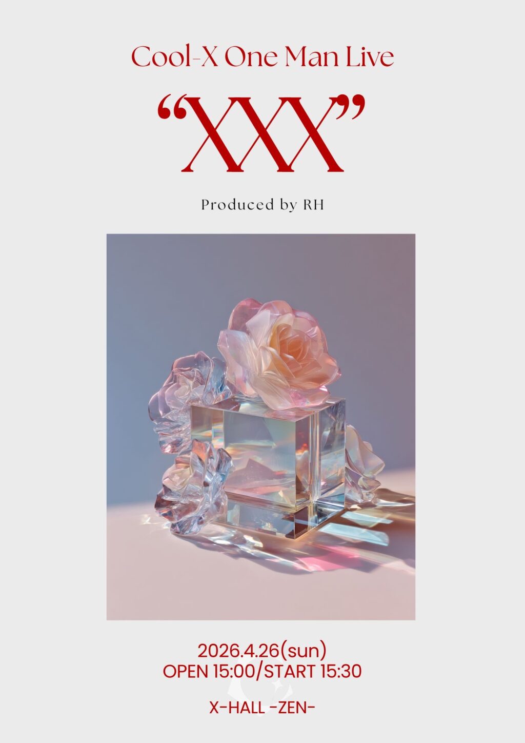RYOSUKE HAGI Anniversary mini Live “XXX” SecretBy サイト管理者 / 2026年4月3日 Cool-X One Man Live “XXX” Produced by RH 4月26日(日) 15:00 OPEN / 15:30 START X-HALL-ZEN- t.co/UMD6mGyVwW