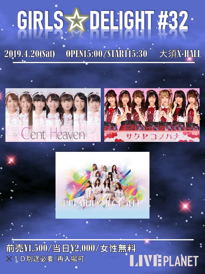 時間 開場15:00/開演15:30 料金 前売1,500円/当日2,000円/女性無料(全て+1D500円) 出演 サクヤコノハナ/Cent Heaven/DREAMING MONSTER 予約開始 4月17日(水)1
