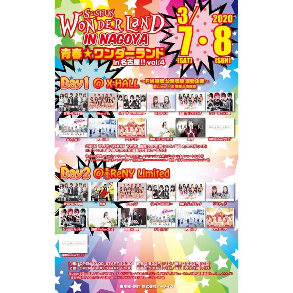 青SHUN学園主催『青春☆ワンダーランド in 名古屋‼ vol,4~本祭1日目~』 ぶっ通し!2Live&2物販&1トークで実施! FM福岡「SHUNの音楽はただ言葉を伝う為に」収録 日時:2020/3/7(土) 時間
