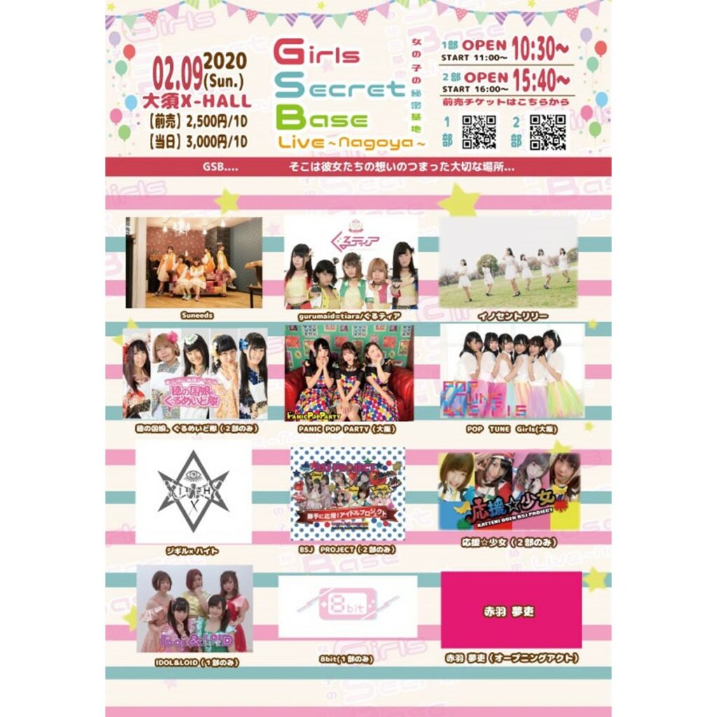 名称:GSB Live Nagoya vol.4 DAY(1部) (Girls Secret Base☆女の子の秘密基地ライブ) 日程:令和元年2月9日(日) 会場:X-HALL-ZEN- 時間: 10:30開場 /
