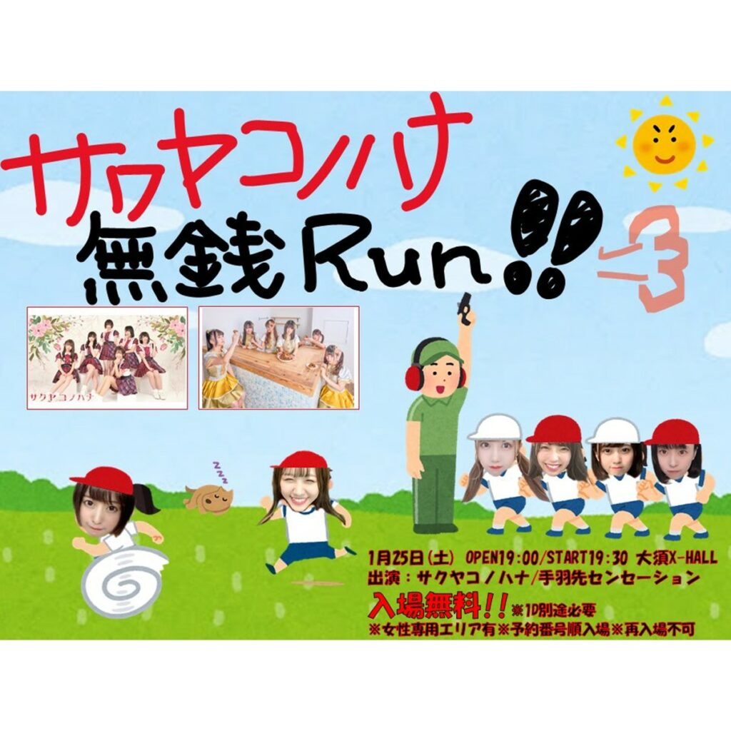 『サクヤコノハナ 無銭Run‼️💨』 会場:大須X-HALL 時間:開場19:00/開演19:30 料金:入場無料(1D別途必要) ※女性専用エリア有 ※公演中再入場不可 ※入場順:①抽選順②TiGET番号順③