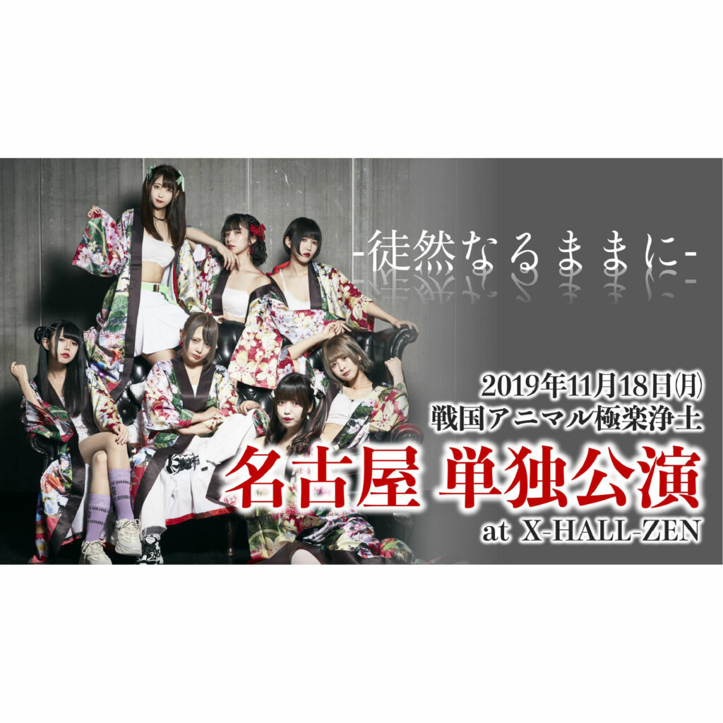 ■2019.11.18(Mon) 戦国アニマル極楽浄土-単独公演 「徒然なるままに」 日程:2019.11.18(Mon) 会場:X-HALL-ZEM 時間:OPEN 18:00 / START 19:00 料金:S予約