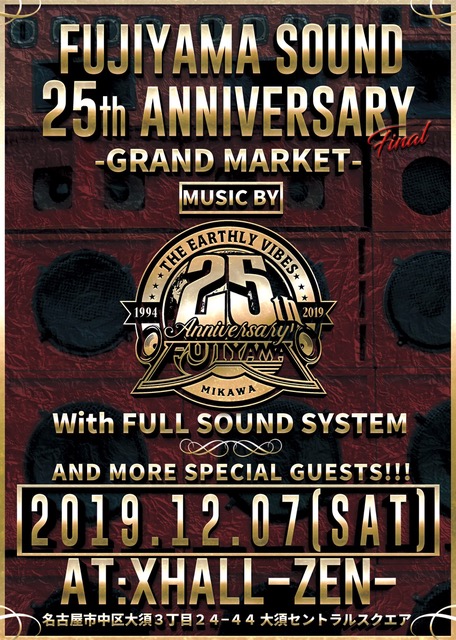 【日時】 12月7日(土) 23:30 オープン 【出演】 FUJIYAMA SOUND with THE EARTHLY VIBES SOUND SYSTEM FULL SET & MORE SURPRISE